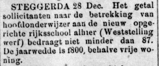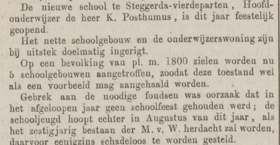 Ze heeft daarvoor een paar maanden in Oldeholtpade gestaan. In 1896 wordt ene T. Posthumus handwerkjuf op de Rijksschool. Dit is waarschijnlijk Geertruida Catharina Posthumus, die ook van Steggerda komt.