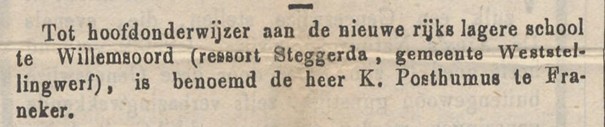 In 1891 wordt er een juf Groot benoemd. Zij komt van Steggerda, maar of ze bij het gezin Posthumus in de kost gaat weten we niet.