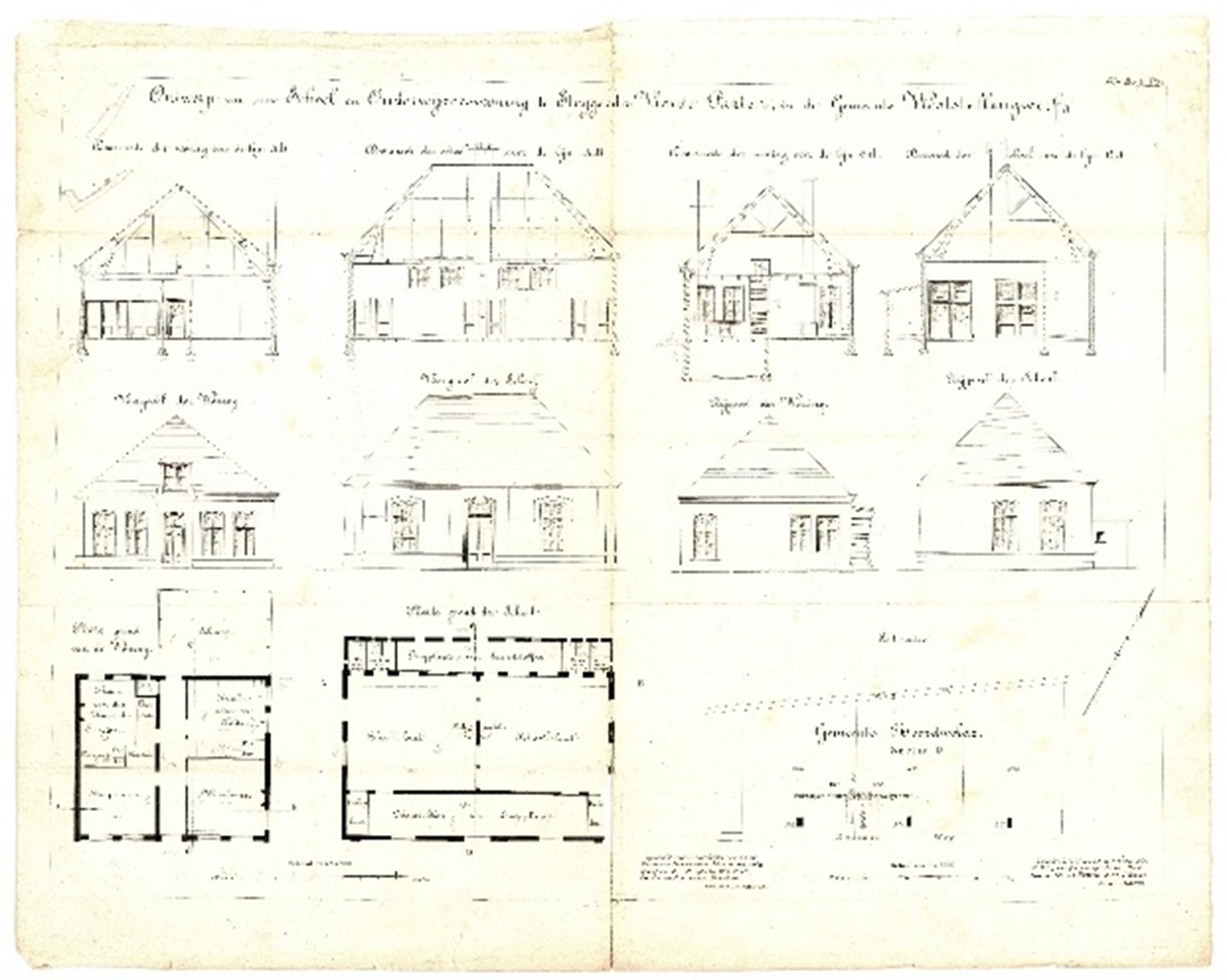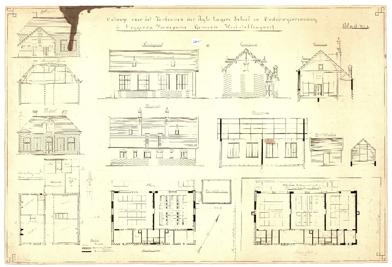 De hoofdenwoning heeft in het midden van de voorgevel de voordeur met een lange hal naar achteren, waar links en rechts deuren op uit komen. Het zal dus zo zijn dat de 2de onderwijzer(es) bij het gezin Posthumus inwoont. Op de bouwtekening wordt ook de kamer voor de hulponderwijzer benoemd.